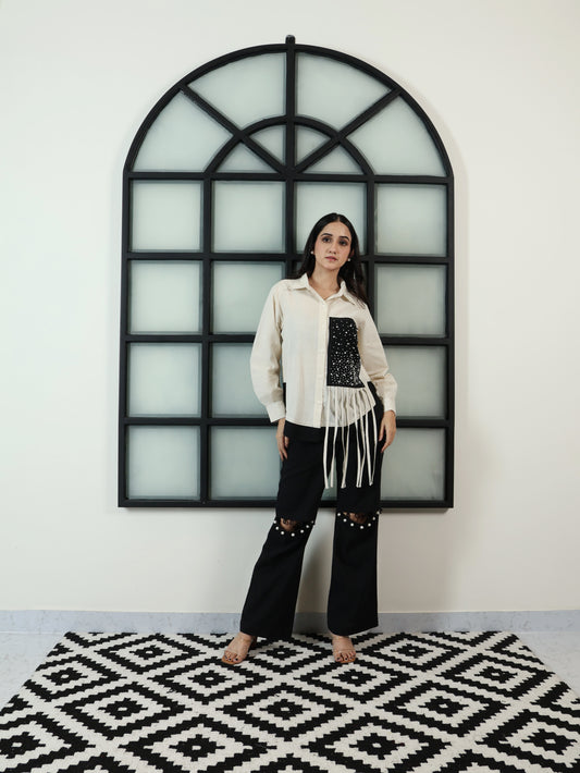 Ava ivory Tassel Shirt