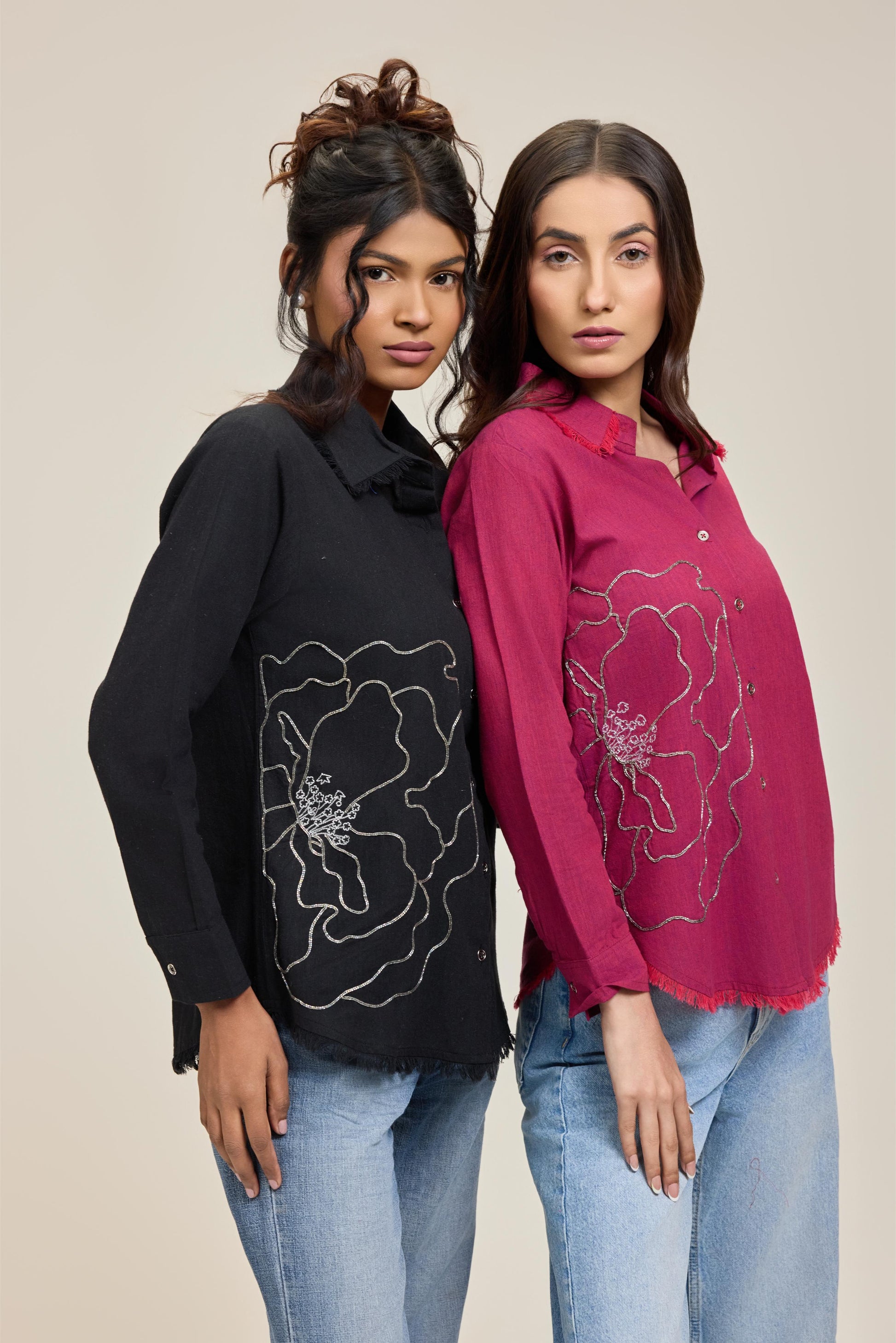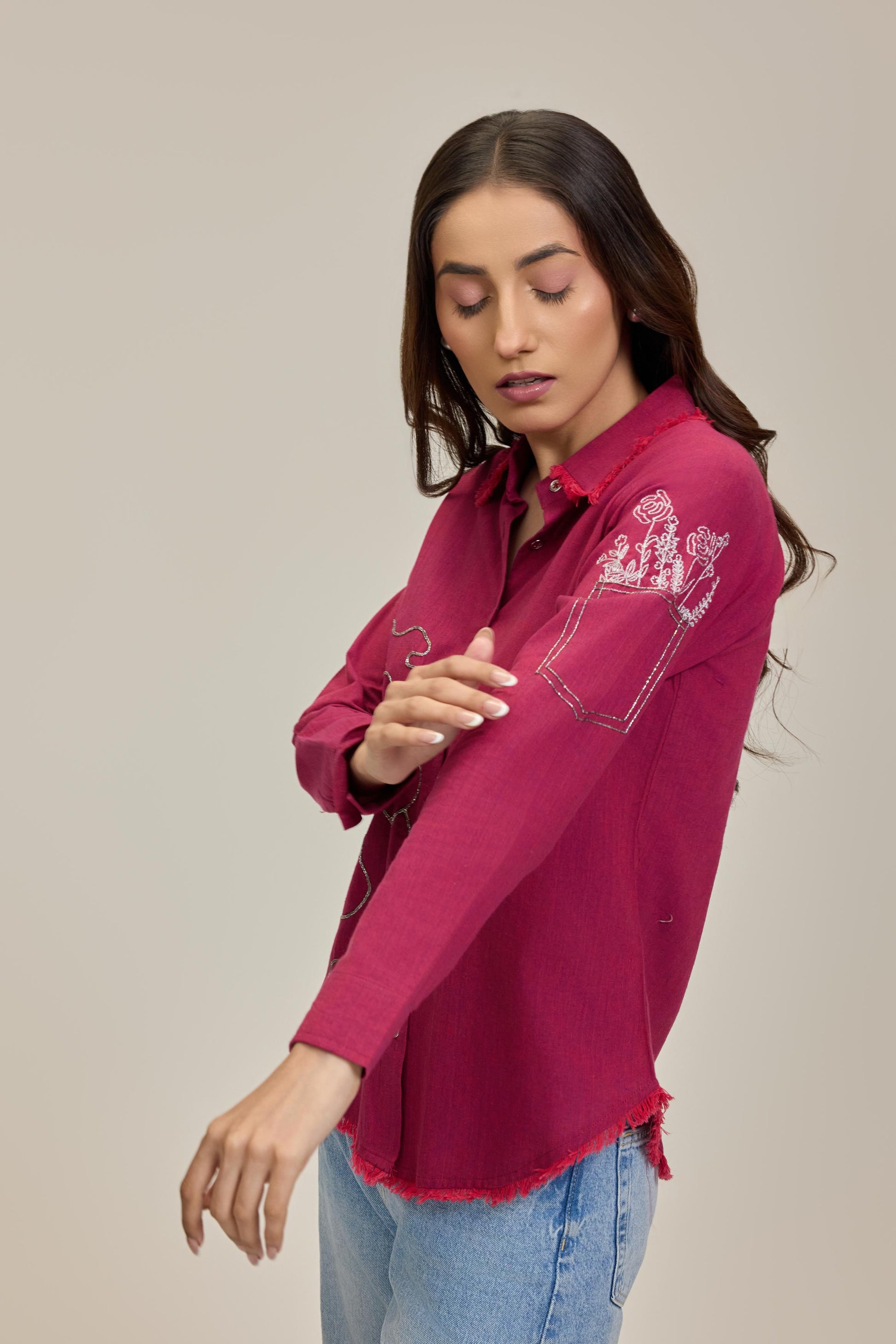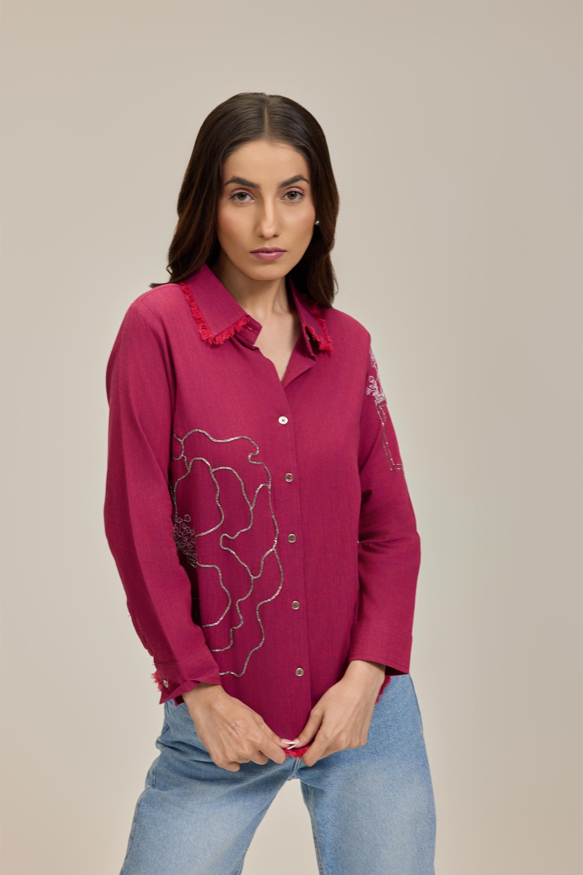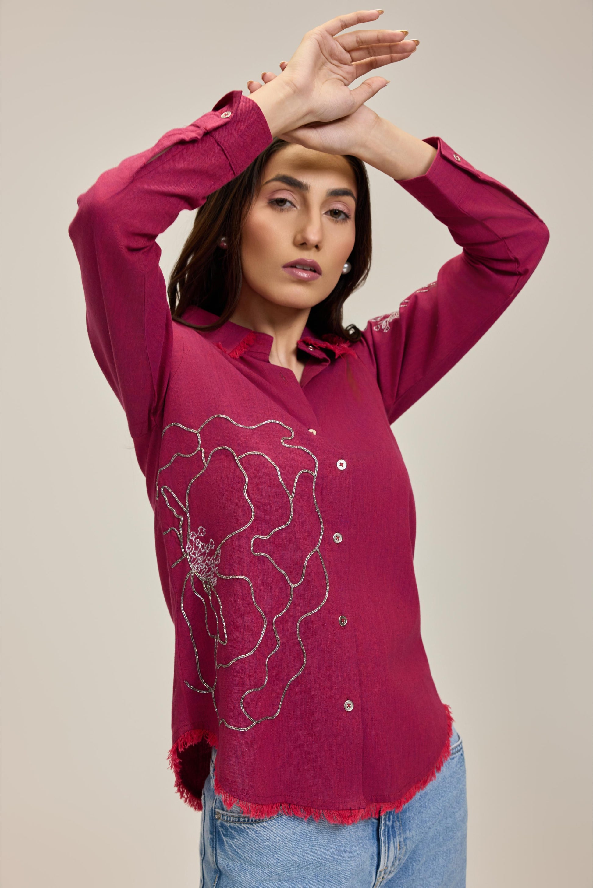 Elevate your wardrobe with this exquisite Pink hand-embroidered shirt, a masterpiece of craftsmanship that seamlessly blends elegance and sophistication. Each delicate stitch tells a story of artistry, making it a timeless addition to any discerning fashionista's collection.